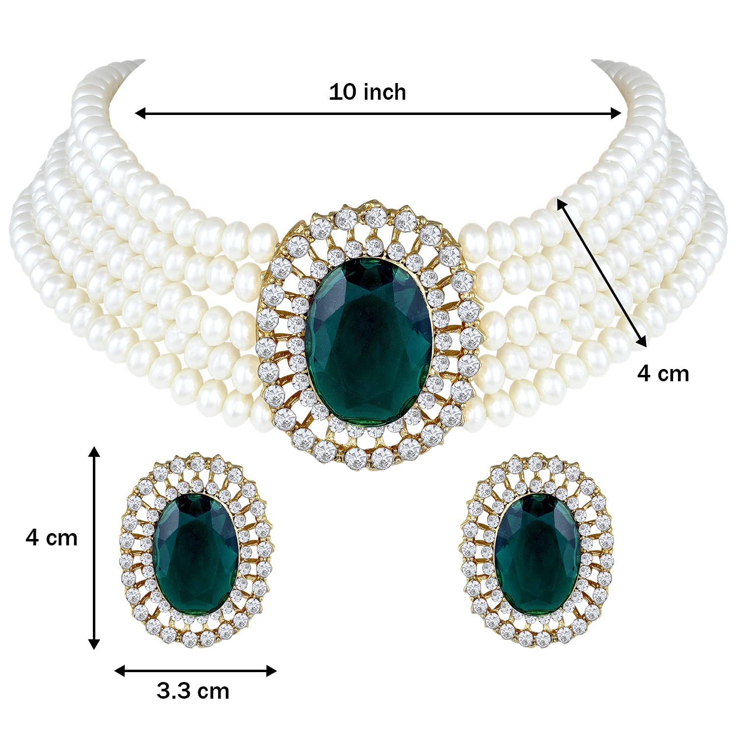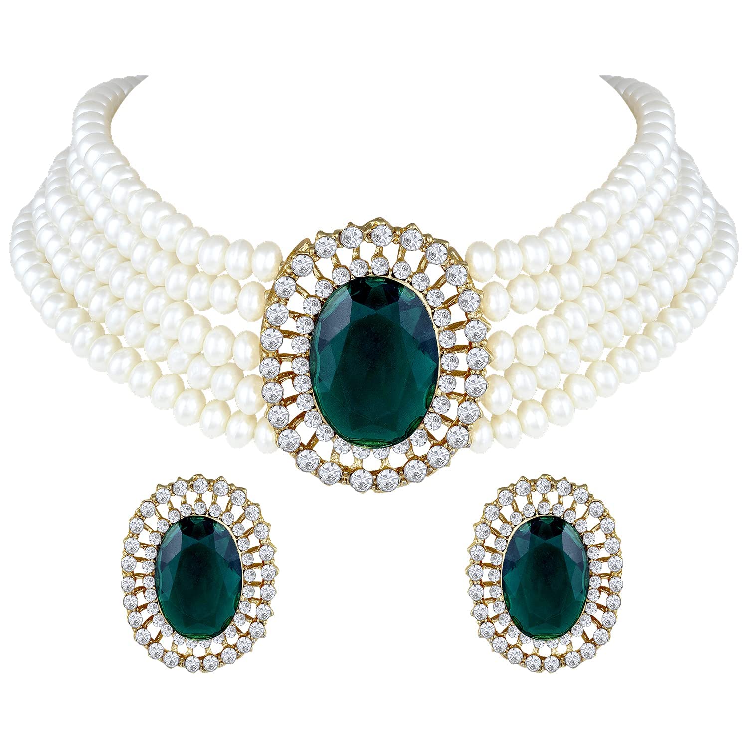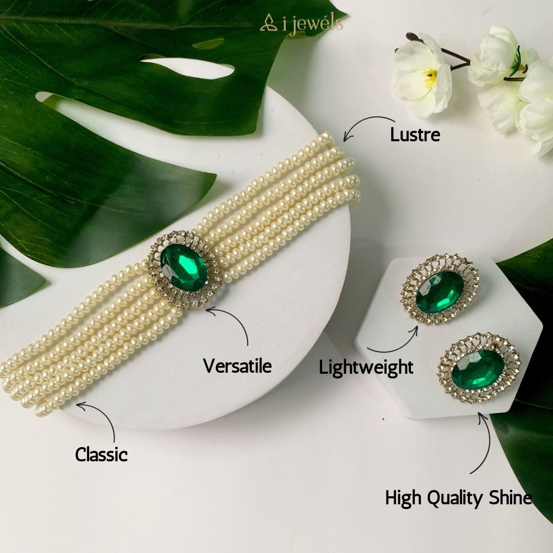 I Jewels Gold Plated Traditional Stone Studded Pearl Choker Necklace Jewellery Set For Women/Girls (ML316)