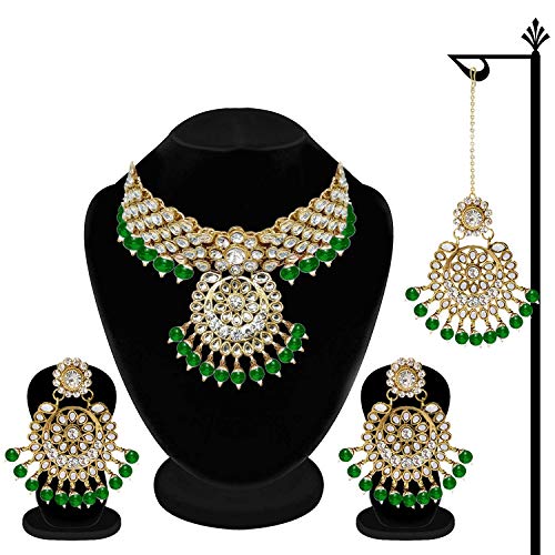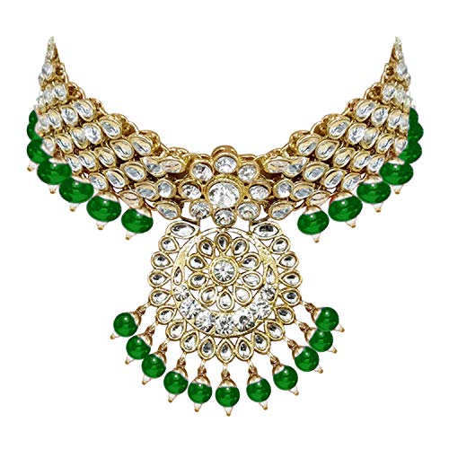 I Jewels Indian Bollywood Gold Plated Kundan Pearl Wedding Choker Necklace Jewelry Set for Women