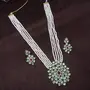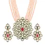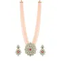 This jewellery set is crafted in gold plated traditional light weight beaded mala handcrafted with uncut kundan. The necklace feature emerald green onyx stone beads work in it and is secured with a drawstring closures. Style this necklace set with a saree or a salwar suit to enhance the look.