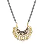 Introducing our exquisite Black Beaded Kundan Pearl Round Mangalsutra for Women a stunning jewelry piece that embodies the essence of tradition and grace. This mangalsutra is thoughtfully designed to be a symbol of eternal love and marital commitment making it a meaningful and cherished accessory. The centerpiece is adorned with intricately crafted Kundan stones known for their timeless appeal and regal beauty. Embrace the tradition and celebrate the everlasting bond of love with this timeless and captivating mangalsutra. Whether you're a bride-to-be or looking for a meaningful gift for a loved one this piece is sure to be treasured for its beauty significance and the love it represents.