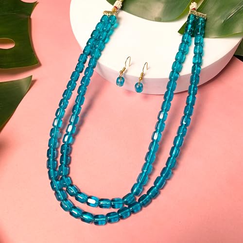 The necklace boasts two layers of meticulously crafted stone beads known for their color elegant appearance. These beads symbolize strength and confidence making them an ideal choice for any occasion. Elevate your elegance with the Two Layer Stone Beads Necklace Pearl Moti Mala Jewelry Set. Embrace the contrasting beauty of pearls and let it adorn you with confidence and sophistication on your special occasions. Make a statement celebrate tradition and radiate timeless grace with this stunning jewelry ensemble.