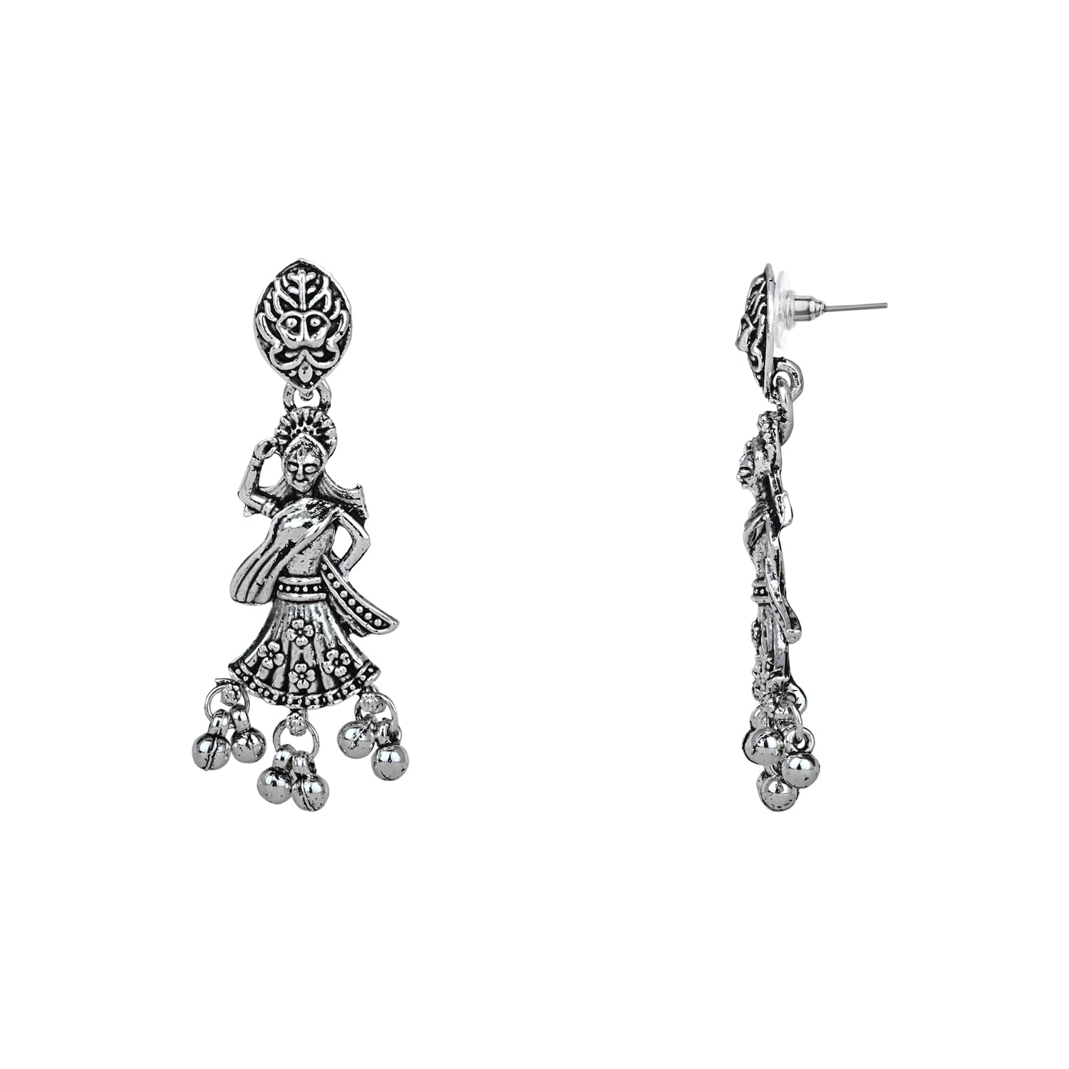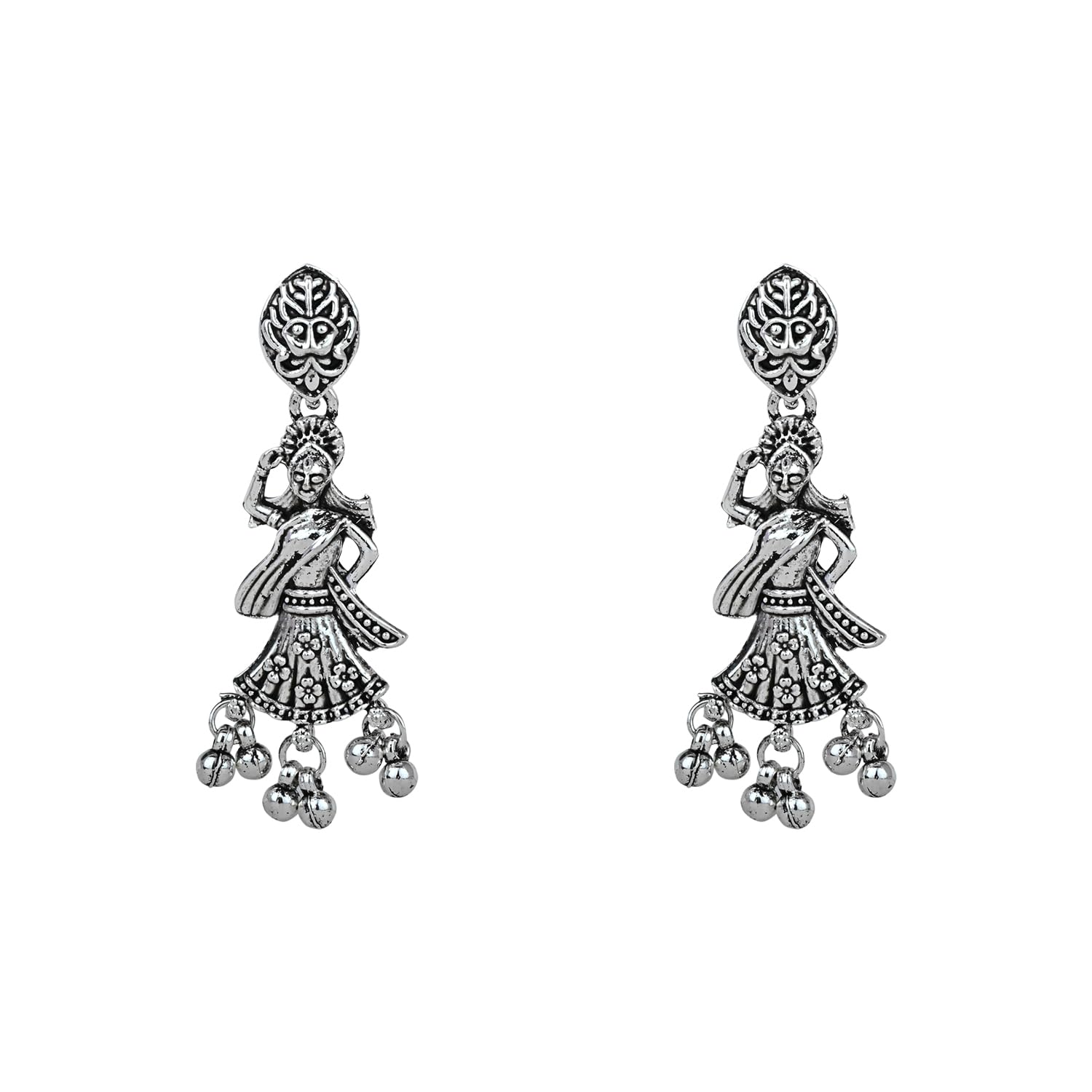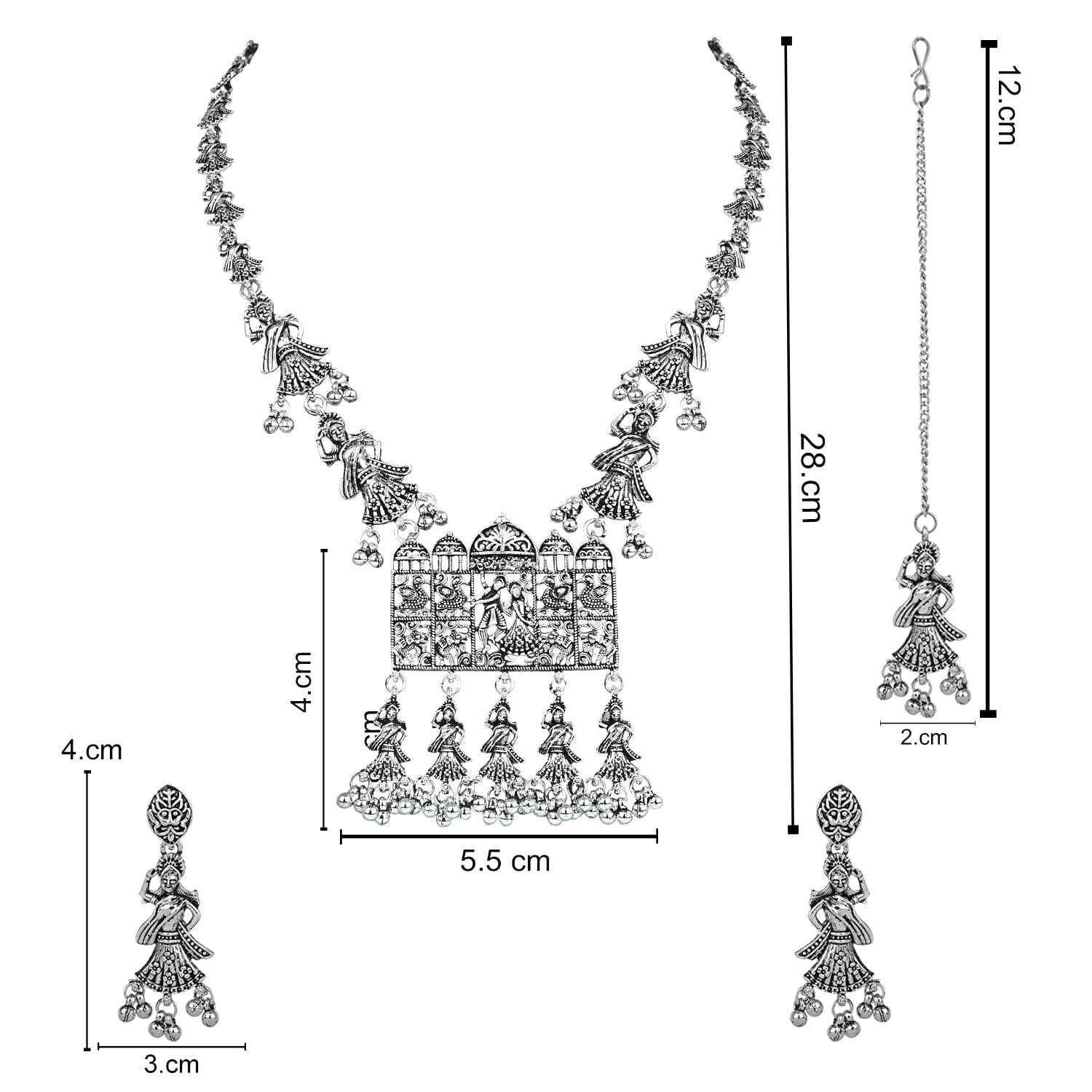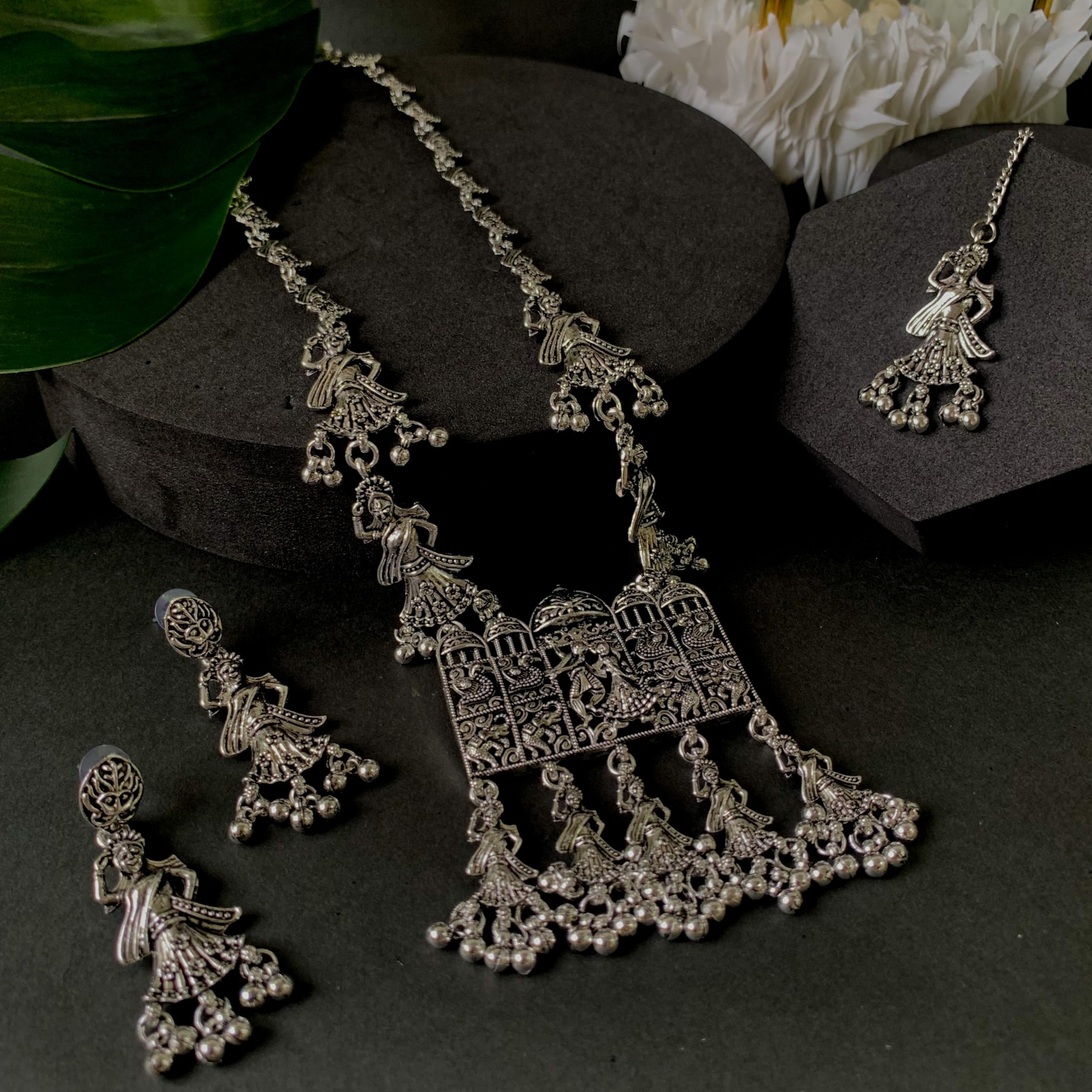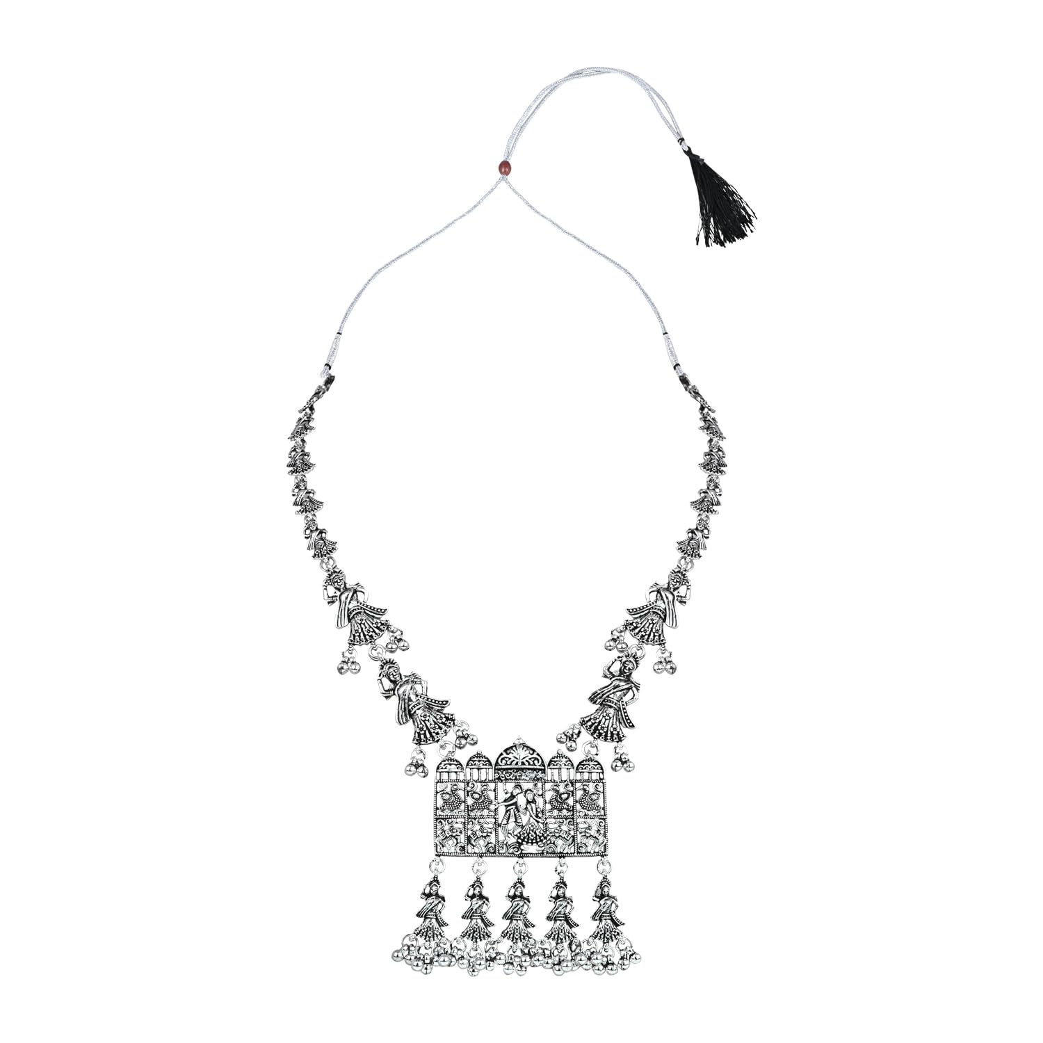 HomeFashionNecklaceI Jewels Navratri Ethnic Silver Oxidised Inspired by Garba With Peacock and Elephant Design Long Necklace Jewellery Set For Women/Girls (MC153OX)