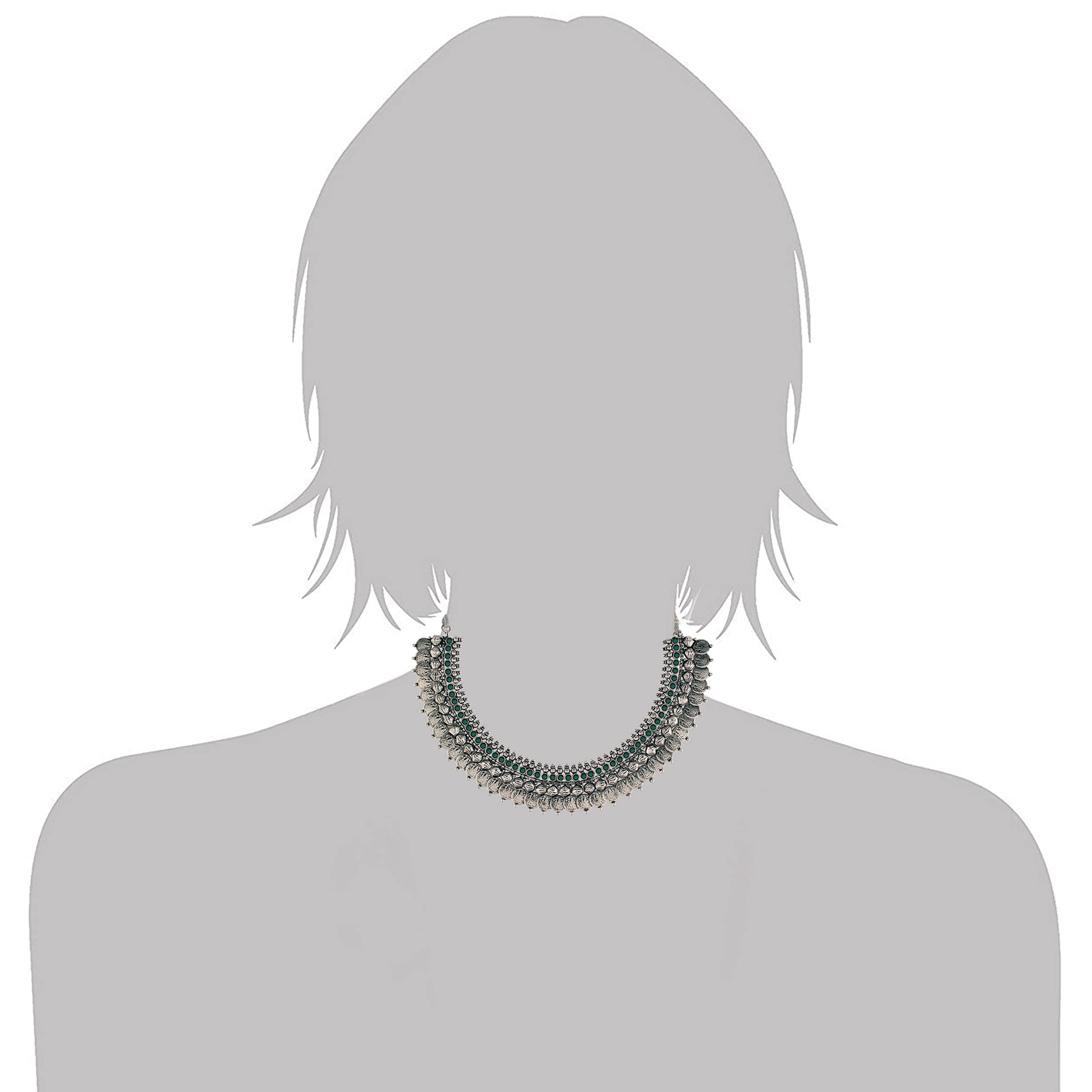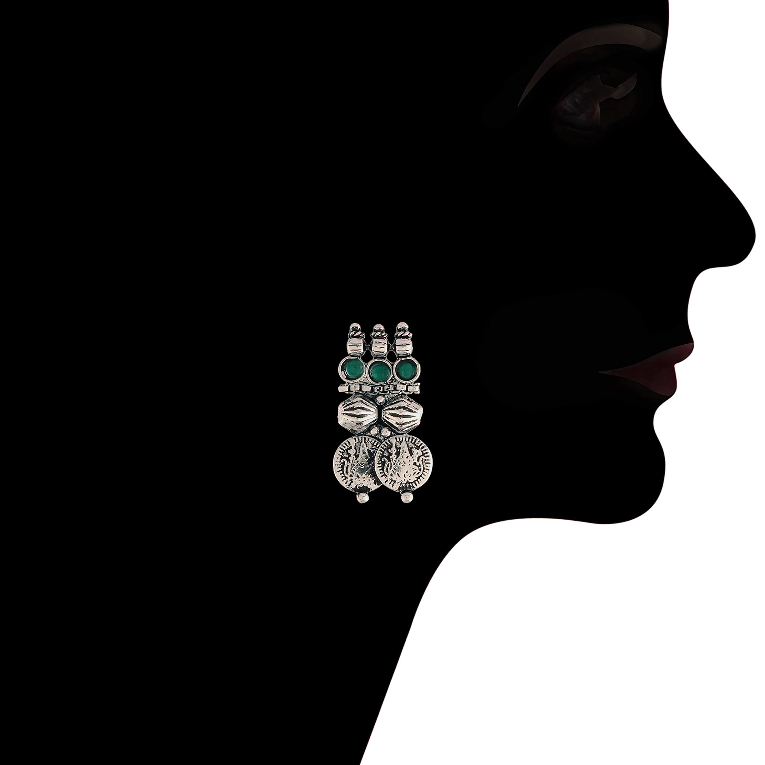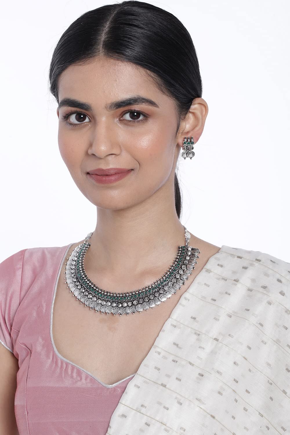 I Jewels Navratri Silver Oxidised Traditional Style Coin Necklace With Earrings For Women & Girls (MC062ZG)