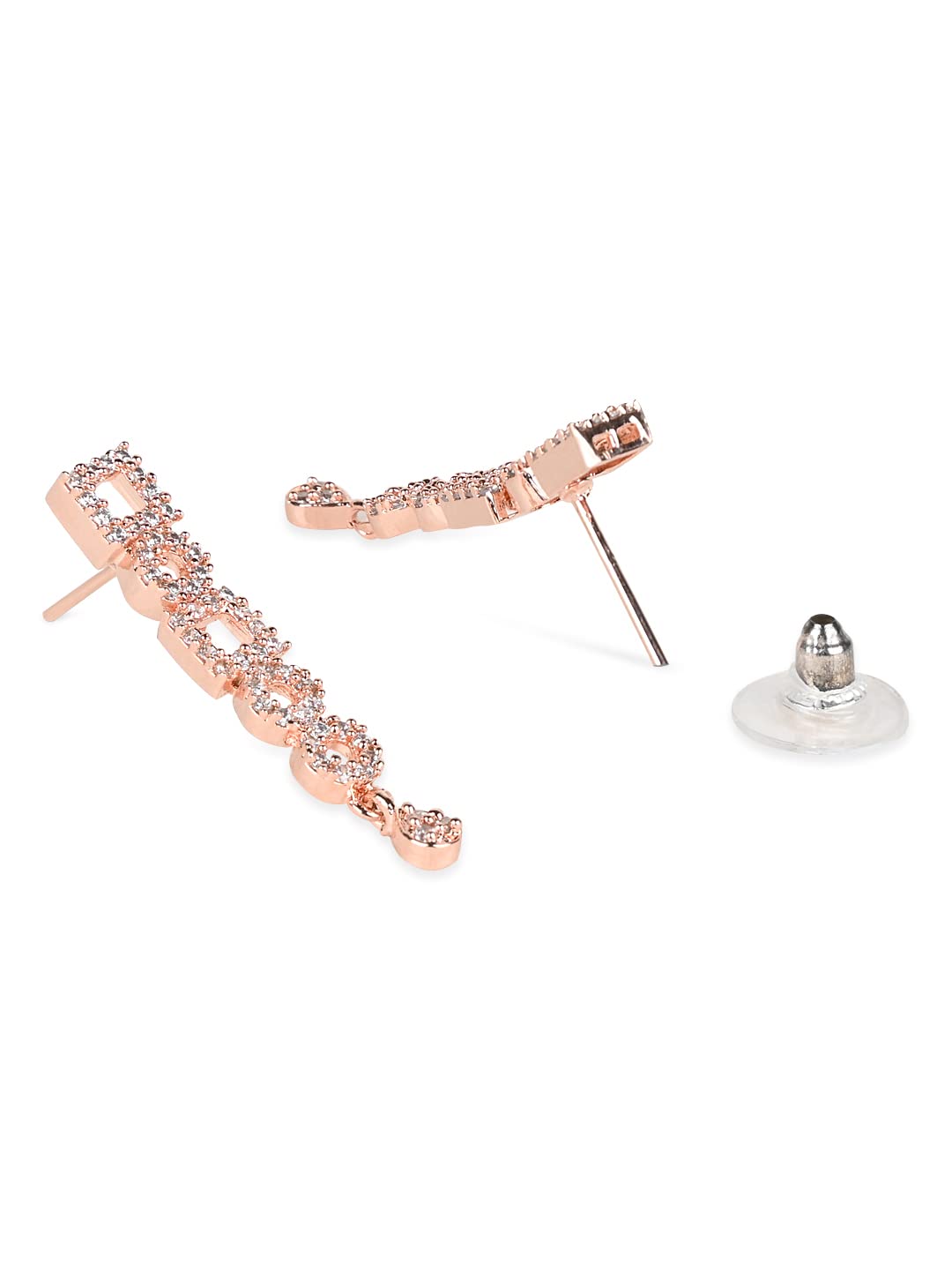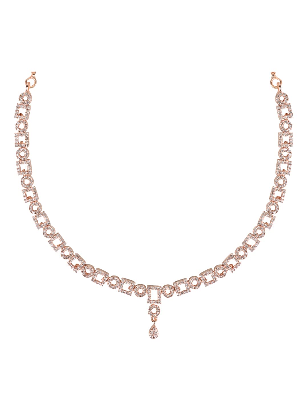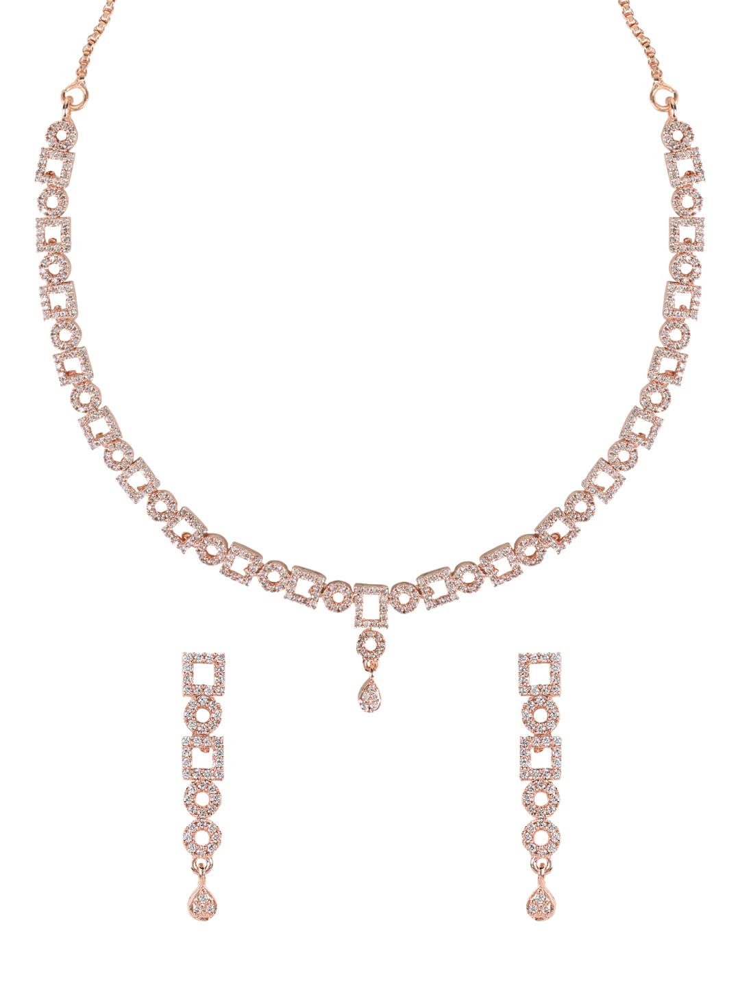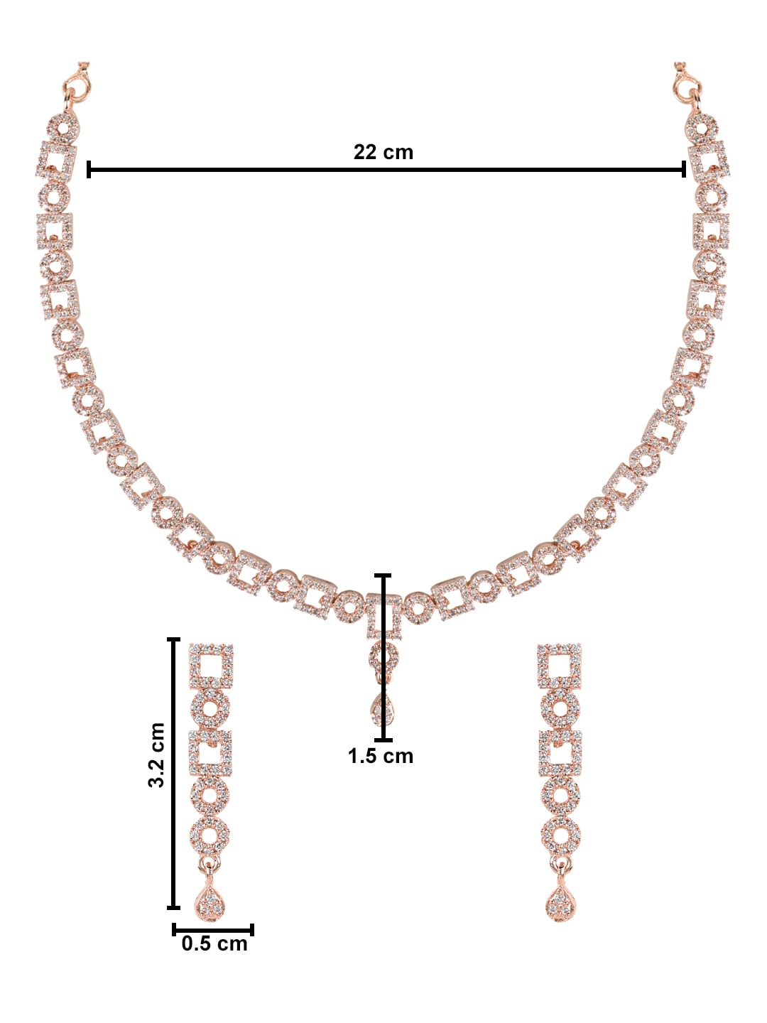 I Jewels Stylish Rose Gold Plated Cubic Zirconia American Diamond CZ AD Necklace Jewellery Set For Women & Girls (AD0030RG)