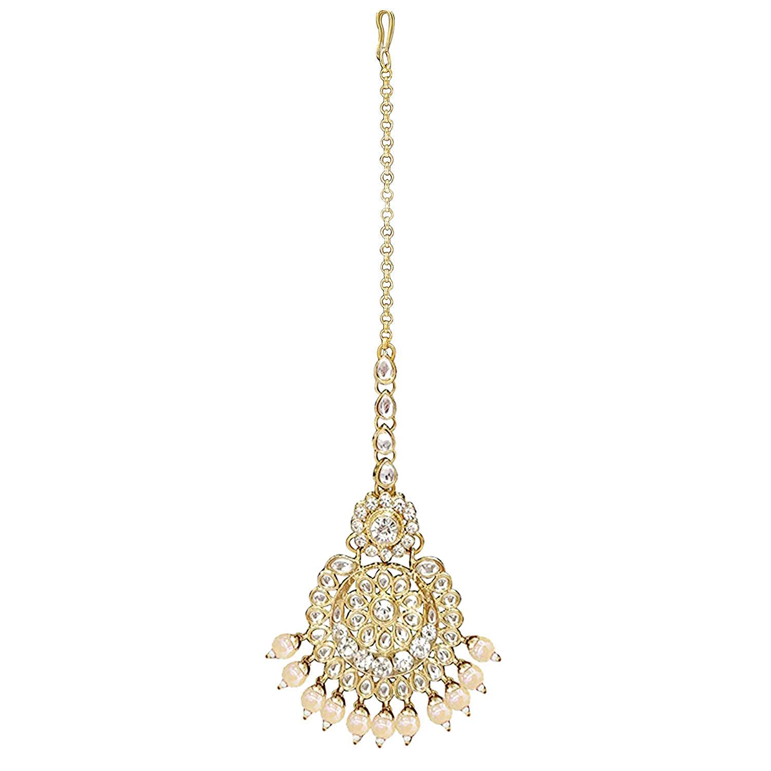 HomeFashionNecklaceI Jewels Traditional 18K Gold Plated Kundan & Pearl Studded Bridal Choker Necklace Jewellery Set With Earrings & Maang Tikka for Women(IJ325-1)