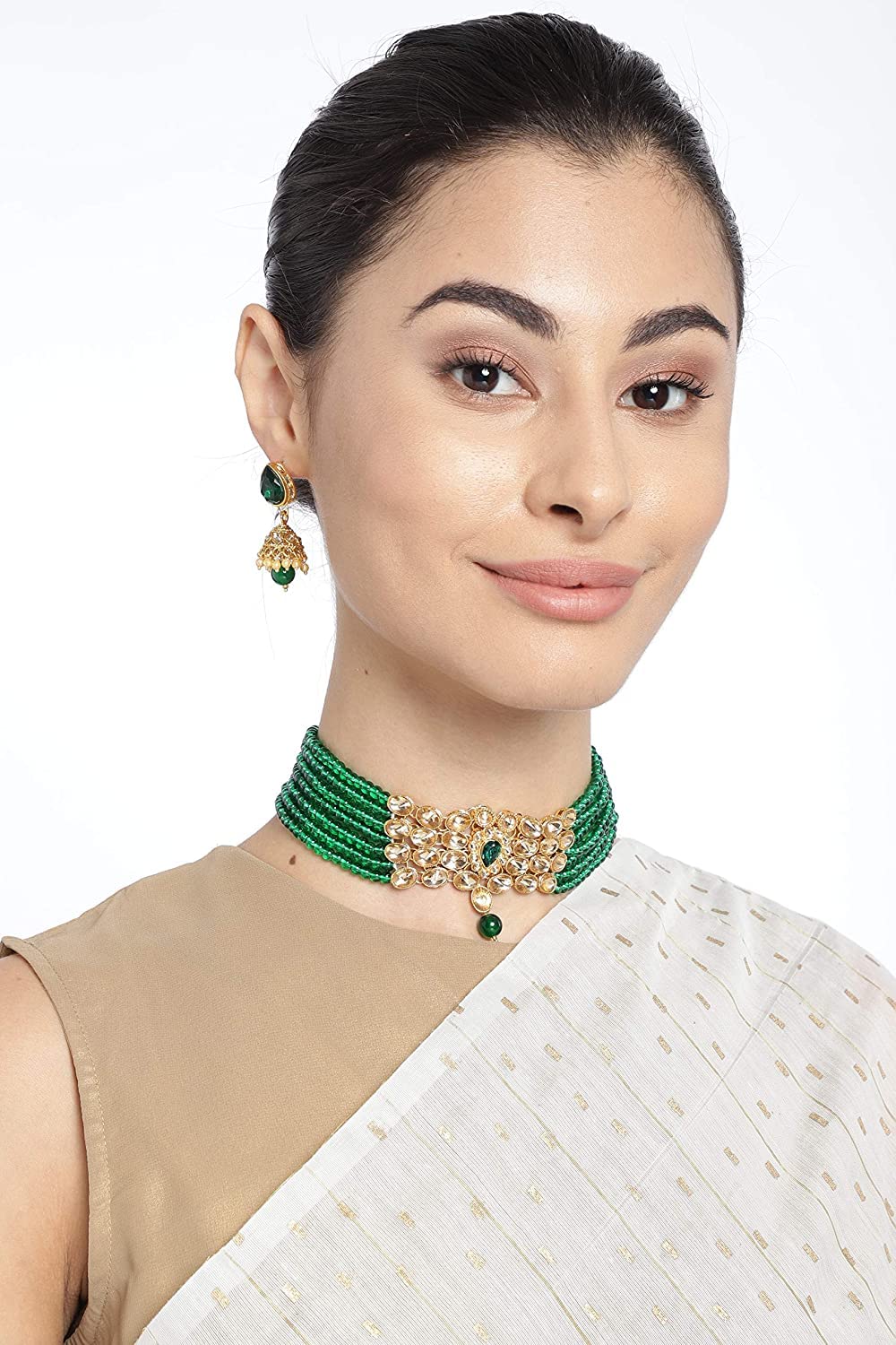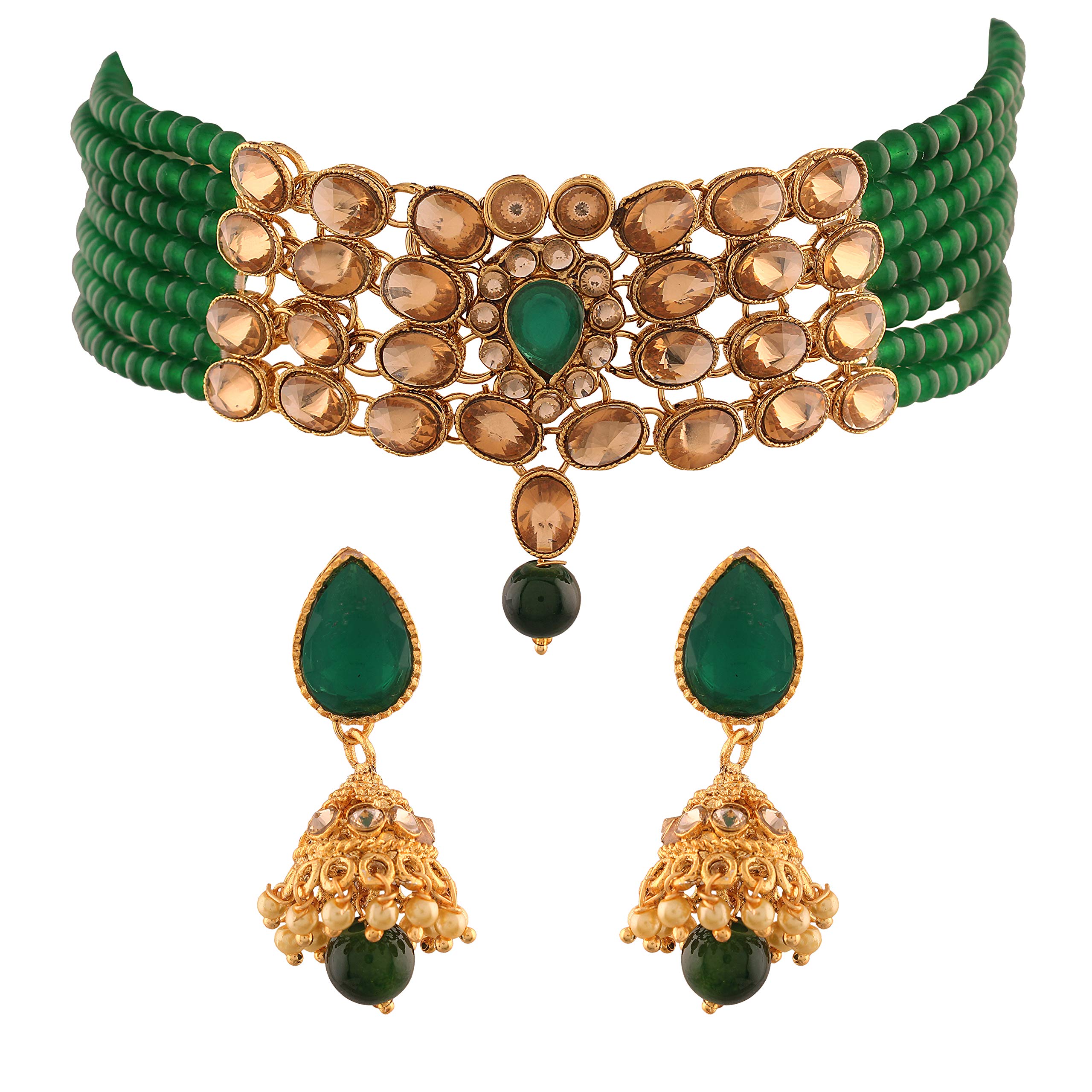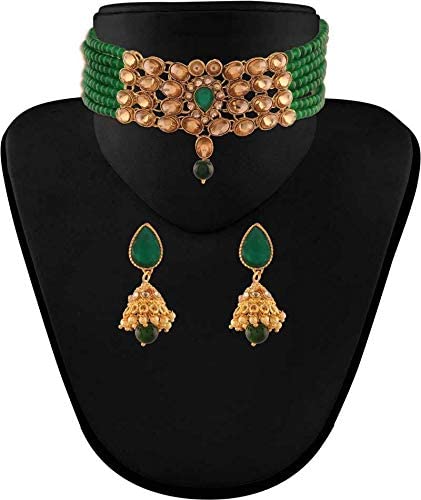 I Jewels Traditional Gold Plated Kundan & Beads Choker Necklace Jewellery Set for Women (ML231G)