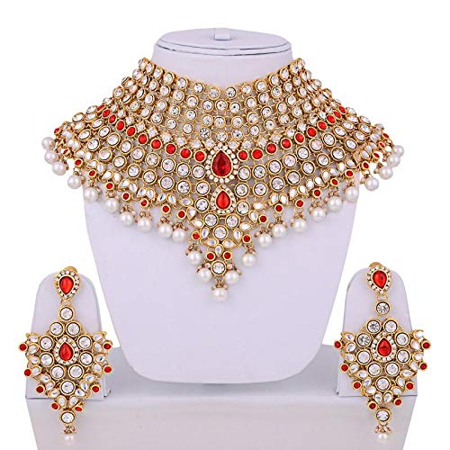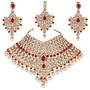 I Jewels presents this stylish Gold Plated kundan Necklace Set for women. It comes along with Earrings & Maang Tikka. It's made of Beads and Kundan which looks stylish and goes perfect with any attire. This jewellery set is a perfect Bridal accessory.