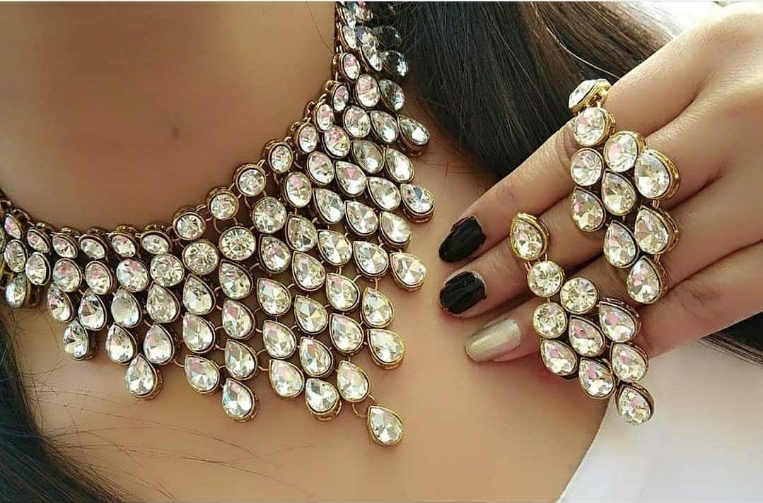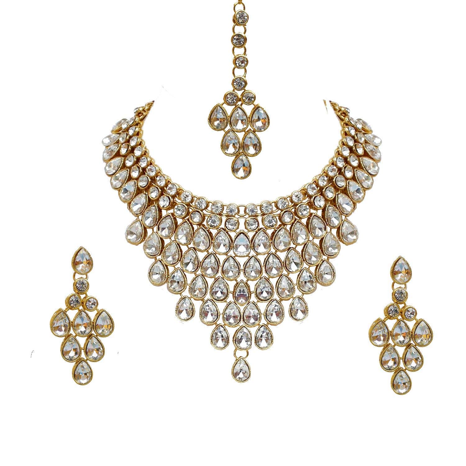 I Jewels Traditional Gold Plated Stone Studded Bridal Choker Necklace Set Earrings & Maang Tikka For Women (IJ332W)