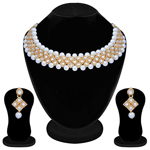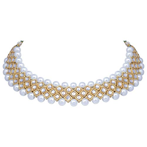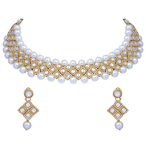I Jewels Traditional Indian Bollywood Gold Plated Pearl & Kundan Choker Necklace Set With Earrings For Women