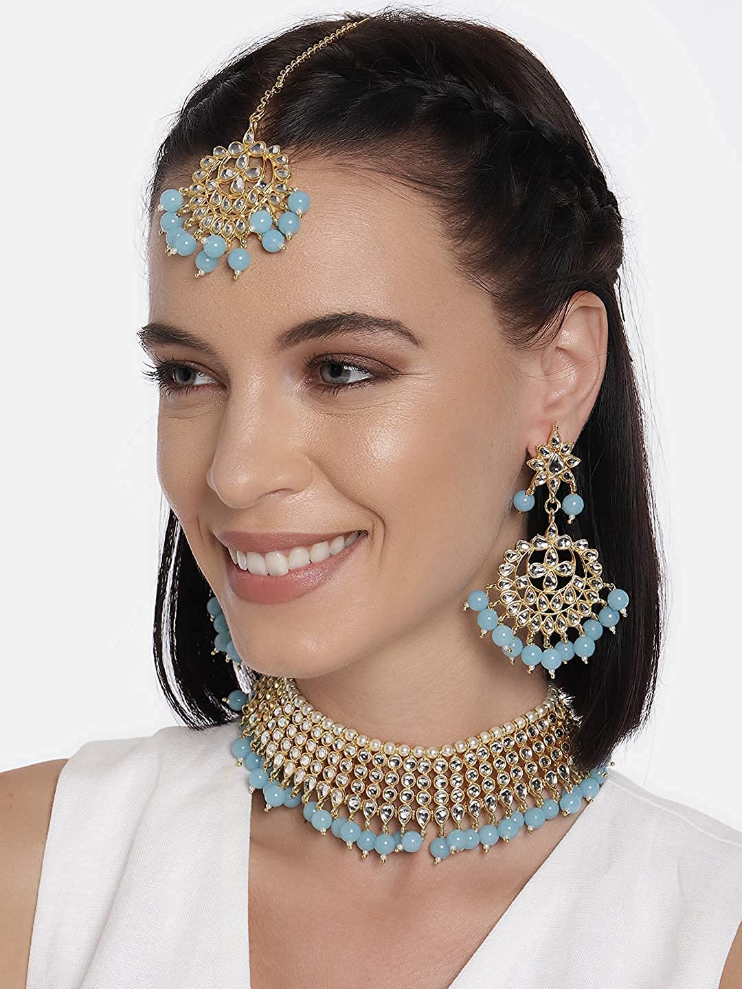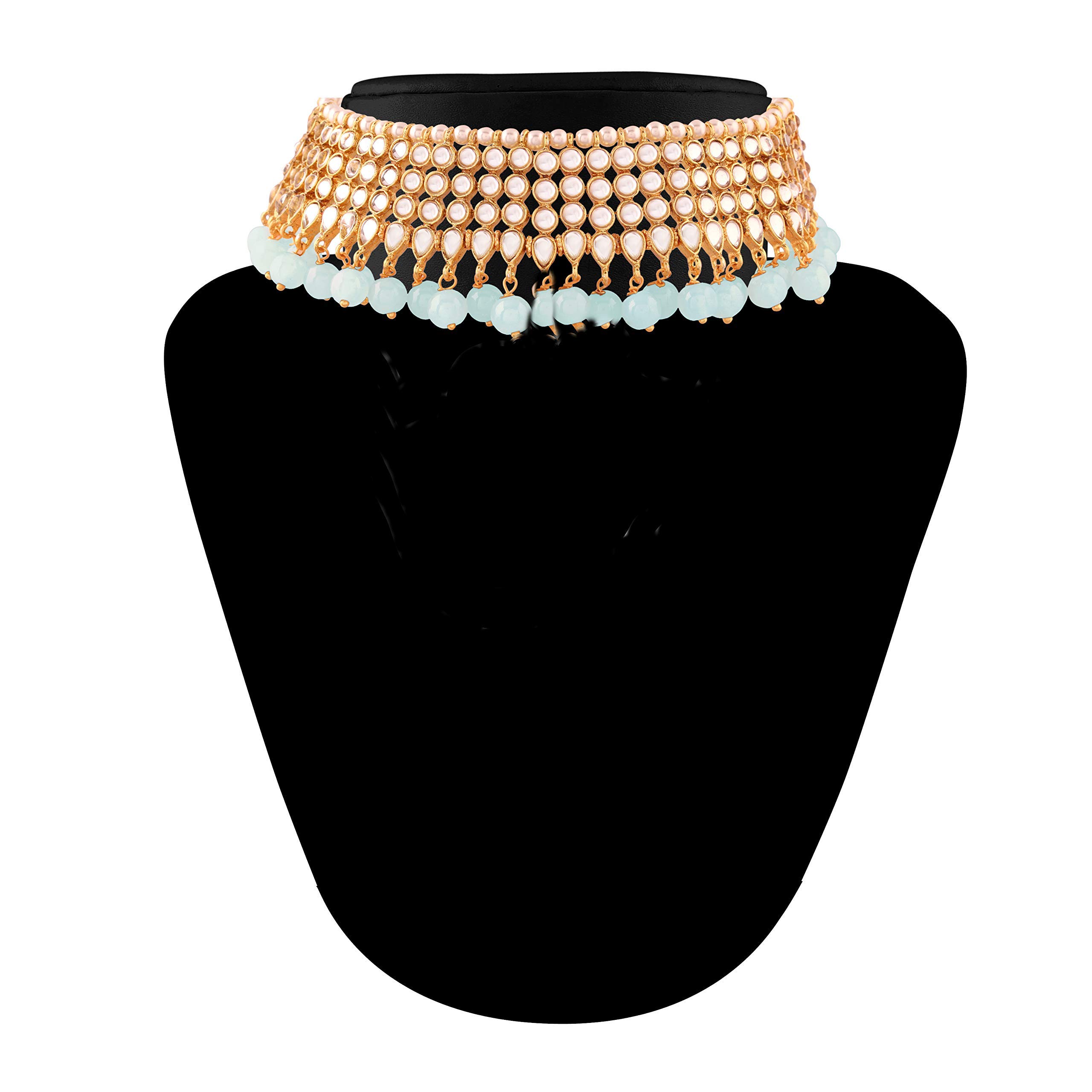 I Jewels Traditional Kundan & White Pearl Choker Necklace Set For Women (K7075)
