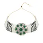 The silver-plated choker necklace set consists of a necklace a pair of earrings. The necklace features kundan studded with pearl beaded in it giving it an elegant and traditional look. The stones and pearls are set in a beautiful pattern adding a touch of sophistication and grace to the necklace. The necklace is secured with drawstring closures which make it easy to adjust the size to fit comfortably around the neck. This is an important feature as it ensures that the necklace will be comfortable to wear for extended periods of time. The necklace is secured with drawstring closures which make it easy to adjust the size to fit comfortably around the neck. This is an important feature as it ensures that the necklace will be comfortable to wear for extended periods of time. The earrings and maang tikka are also adorned with stones and pearls which match the pattern of the necklace. The earrings have a beautiful design which makes them easy and comfortable to wear. The maang tikka is a traditional Indian hair accessory that can be worn with the necklace and earrings to complete the look.