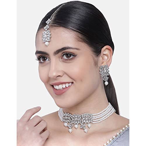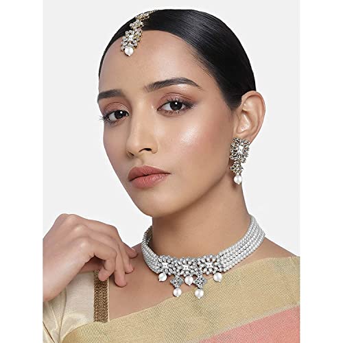 HomeFashionNecklaceI Jewels Valentines Day Gifts For Her 18K Gold Plated Indian Bollywood Light Weighted Kundan Pearl Studded Jewelry Set for Women (ML224)