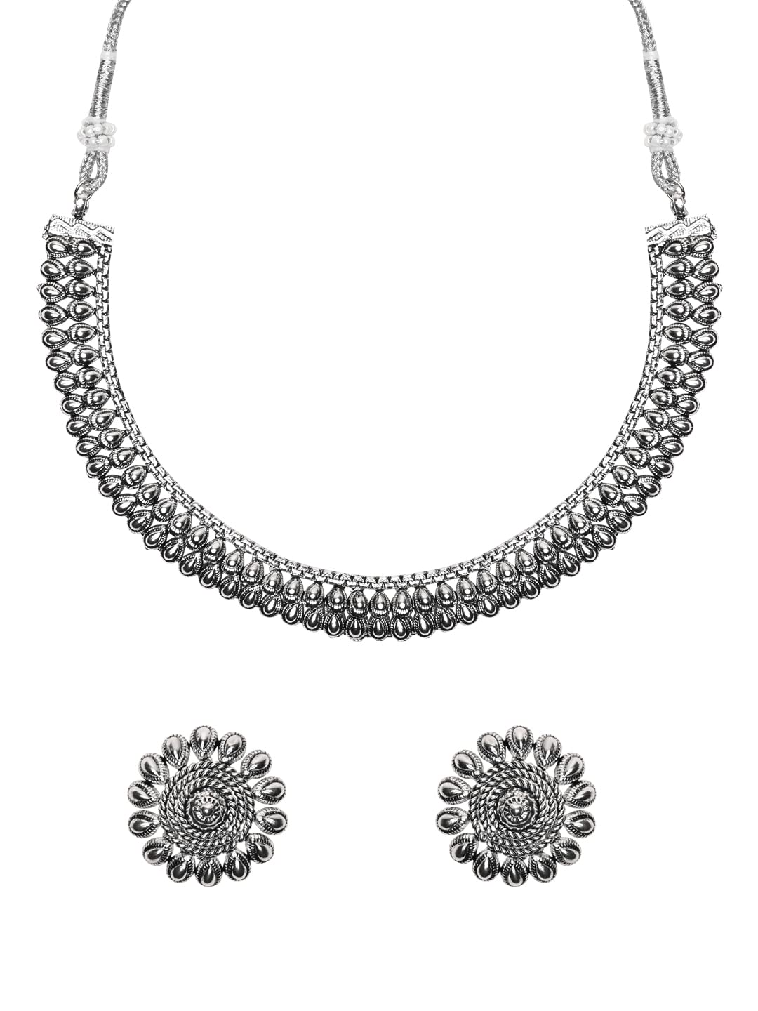 HomeFashionNecklaceI Jewels Valentines Day Gifts For Her Silver Oxidised Indian Wedding Bollywood Choker Necklace and Earrings Jewellery Set For Women (MC058-118)