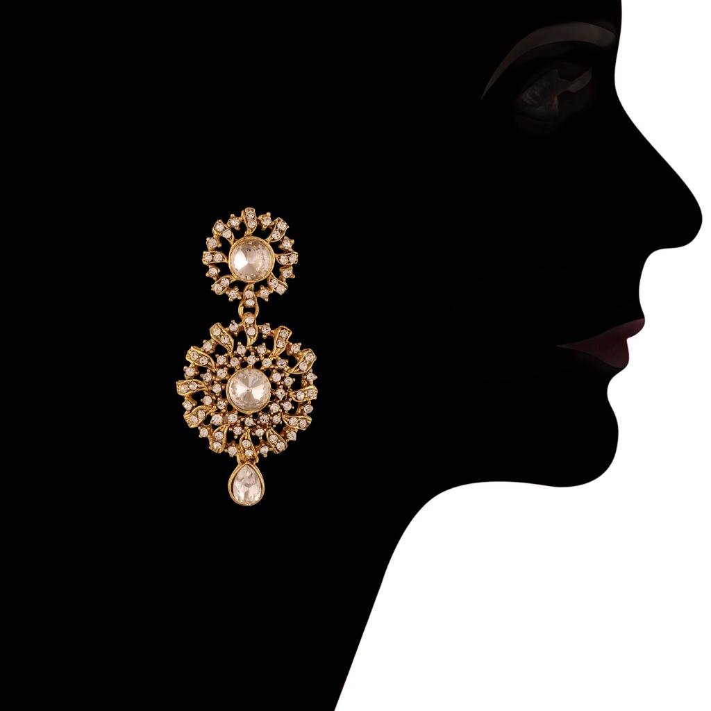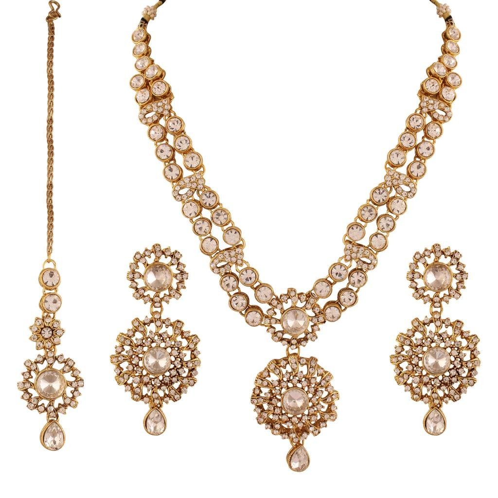 I Jewels Women's Traditional Gold Plated Kundan Necklace Set with Maang Tikka White