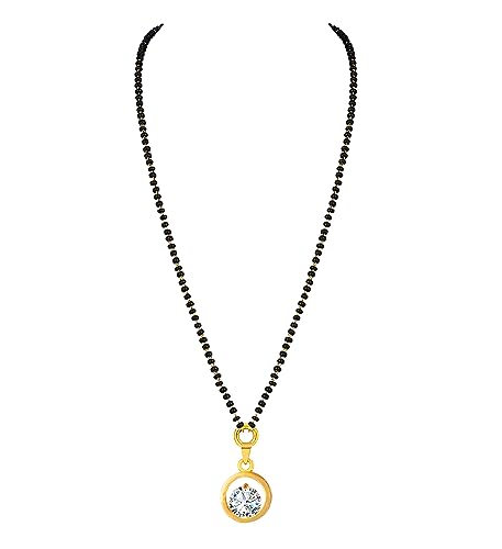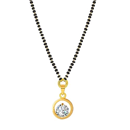 JFL - Jewellery for Less Latest Gold/Silver Plated Solitaire Modern Cz American Diamond Mangalsutra for Women. Wear this stylish mangalsutra design with your salwar suit during the day and keep it on while you get ready to go out at night in your little black dress and a pair of pumps. JFL Jewellery has designed this mangalsutra and tanmaniyas keeping in mind latest style trends to make you look gorgeous and contemporary.