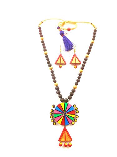 Handmade Terracotta Necklace sets carved out of natural materilike clay wood bark and leaves is very popular among masses. The designs are truly eye catching and colours used are bright. These jewellery pieces can be mixed and matched with each other and with different dresses. It provides a very trendy look to the wearer