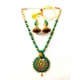Karru Krafft Women Handcrafted Terracotta Necklace Set Traditional Green Hand Painted Jewellery Set