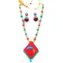Karru Krafft Women Handcrafted Terracotta Necklace Set Traditional Red & Firozi Hand Painted Jewellery Set