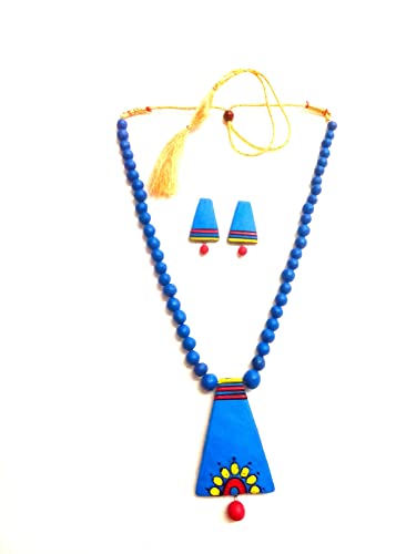 Karru Krafft Women's Handcrafted Terracotta Necklace Set Traditional Blue Hand Painted Jewellery Set