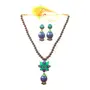 Karru Krafft Women's Handcrafted Terracotta Necklace Set Traditional Blue Hand Painted Jewellery Set