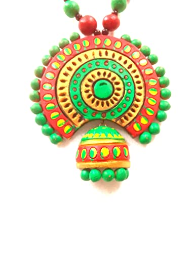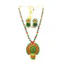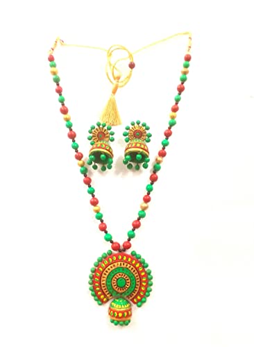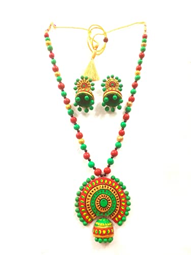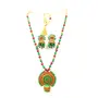 Karru Krafft Women's Handcrafted Terracotta Necklace Set Traditional Green Hand Painted Jewellery Set