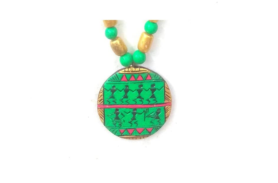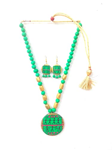Karru Krafft Women's Handcrafted Terracotta Necklace Set Traditional Green Hand Painted Jewellery Set