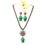 Karru Krafft Women's Handcrafted Terracotta Necklace Set Traditional Green Hand Painted Jewellery Set