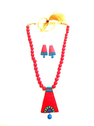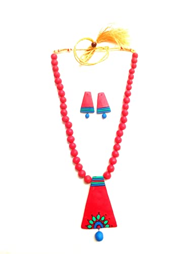 Karru Krafft Women's Handcrafted Terracotta Necklace Set Traditional Hand Painted Jewellery Set