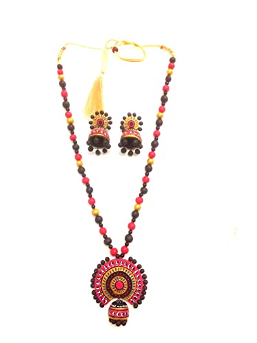 Karru Krafft Women's Handcrafted Terracotta Necklace Set Traditional Hand Painted Jewellery Set