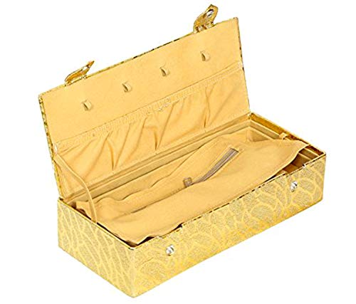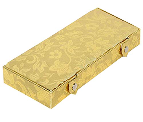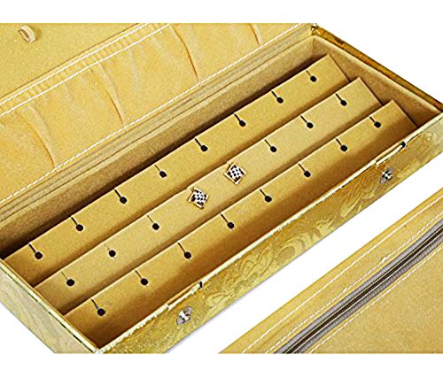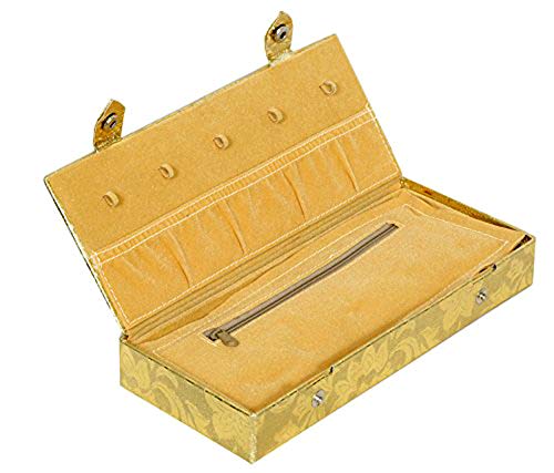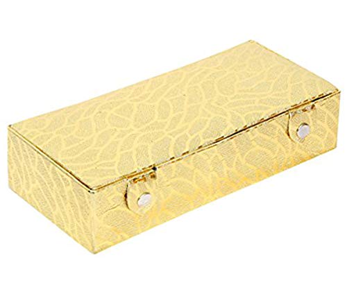 Material: Hard Board Color: GoldPackage Contents: 1 Piece Earings Travel Jewellery Storage Box Size: 26 cm x 12 cm x 4 cmIt has velvet lining in each section that protects your precious jewelry andavoids any tangling and scratches the button closure works well.Multi-functions: Ideal for storing small jewelry this jewelry box organizer for storing your rings earrings necklaces bracelets watches and hair clips reasonable functional partition make all the jewelry is ordered.Perfect Gifts: simple and compact design. Jewelry Box Woman with elegant external look. By sending the jewelry box to your wife mother daughter girlfriend and colleagues on special days such as Valentine's Day birthday Mother's Day Christmas Day or the day of the wedding.A good way for your jewelry storage convenient and easy collection.