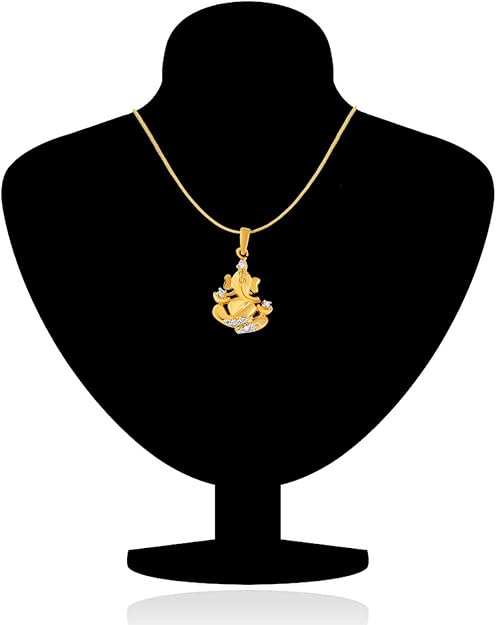 Mahi Collection Gold Plated CZ Stones Ganpati Pendant For Men And Women - PS1101375G
