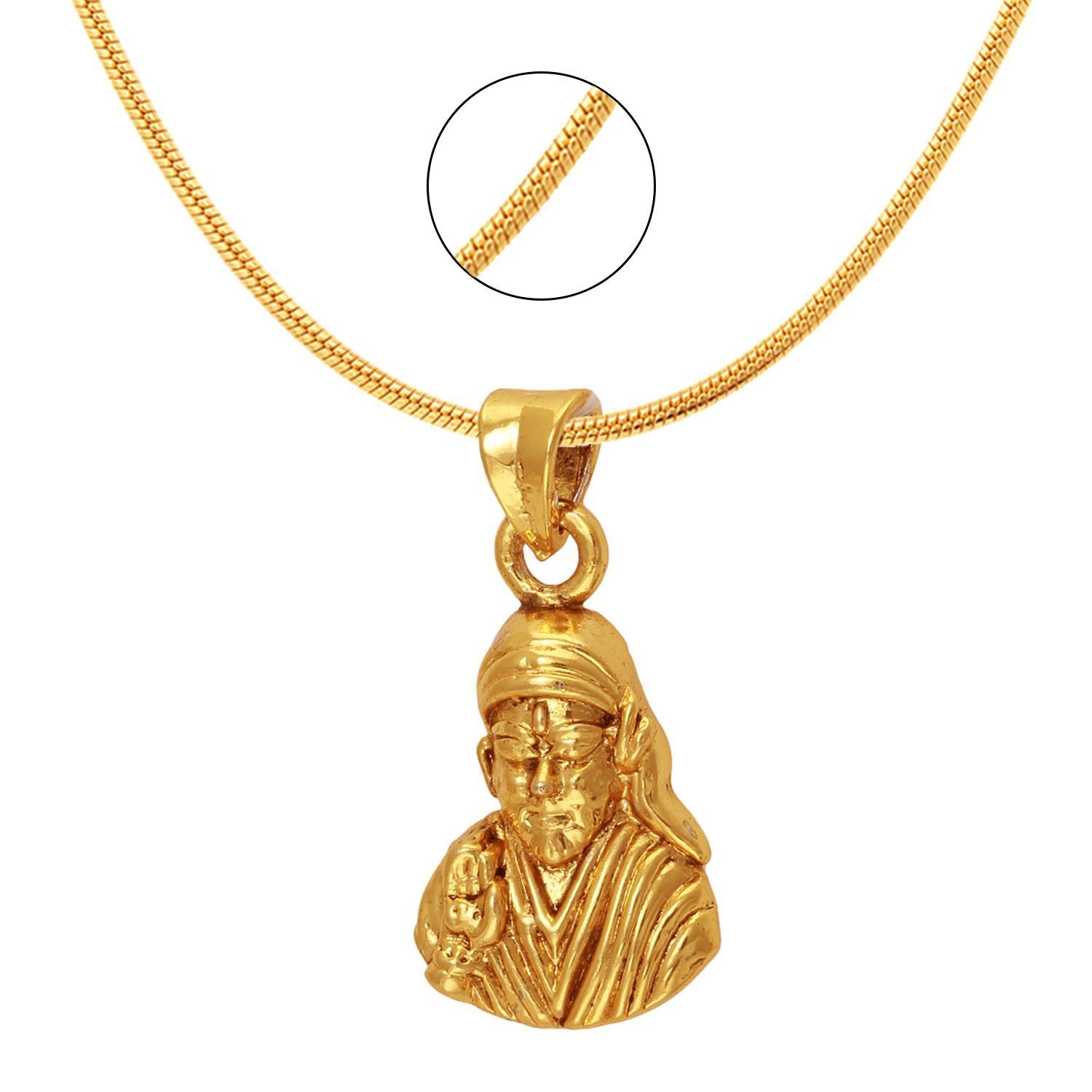 Mahi Exa Collection Sai Baba Gold Plated Religious God Pendant with Chain for Men & Women PS6012005G
