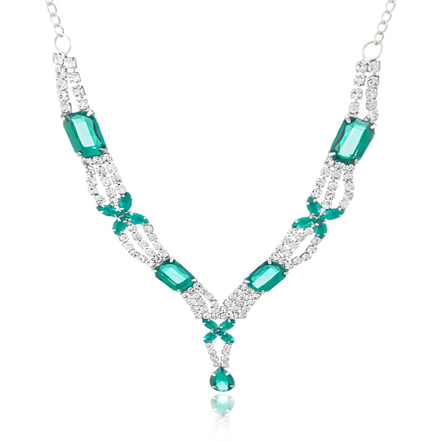 Mahi Rhodium Plated Asscher Necklace Set of Alloy Brass with Green Austrian Crystals for Women NL4101011Gre