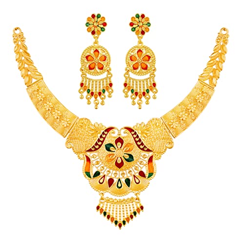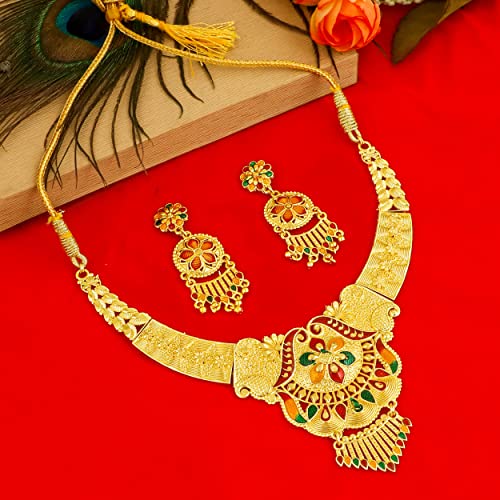 Mansiyaorange Traditional 1 Gram Golden Multi Choker/Short/Necklace /Imitation/Jewelry/Jualry/Necklace/Jewellery/julry Set For Women