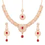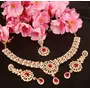 HomeFashionNecklaceNew! Touchstone Indian Bollywood Desire Enchanting Floral Diamond Studded Look White Rhinestone Pink Faux Tourmaline Bridal Designer Jewelry Necklace Set in Gold Tone for Women