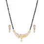 Priyaasi Designer Ad Studded Golden ColorFloral Design Traditional Manra and Earrings Combo for Women with Black Beads Chain