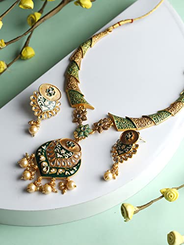 Priyaasi Ethnic Gold & Green Floral Meenakari Jewellery Set