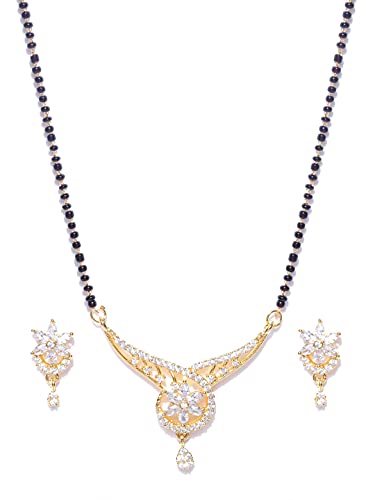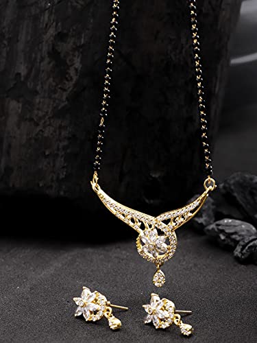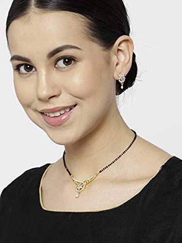 Priyaasi Gold-ColorStudded Floral Patterned Manra Set with Earrings