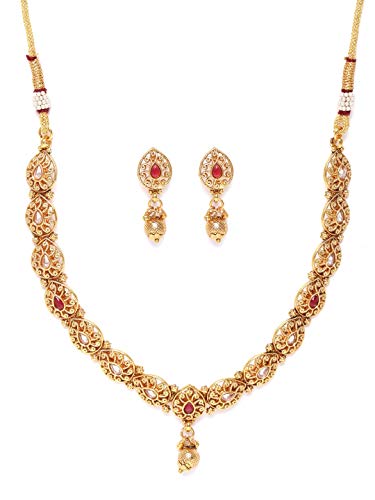 Priyaasi Gold-Plated Gold Artificial Stone Jewellery Set for Women