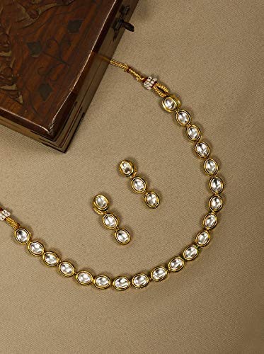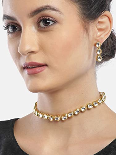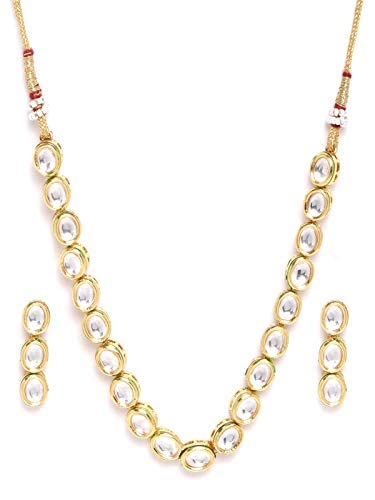 Priyaasi Gold-Plated Short Brass Jewellery Set Necklace for Girls and Women (Kundan) (Gold)