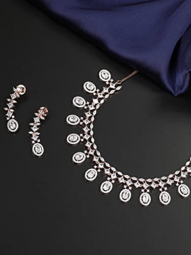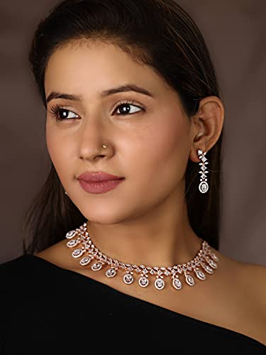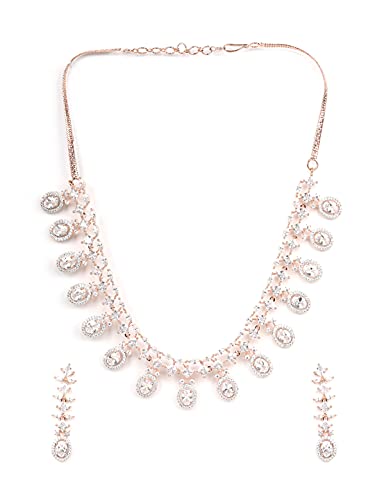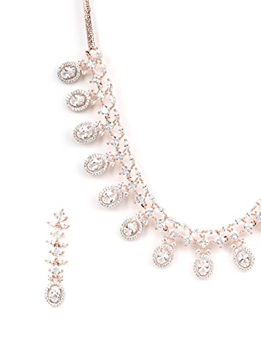 Priyaasi Halo Pattern Jewellery Set for Women | Rose Gold-Color| Metal | Designer Flower Jewellery Set for Women | Festive & Bridal | Jewellery Set for Wedding Engagement & Party