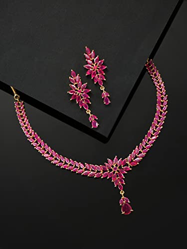 Priyaasi Indian Jewelry Set for Women | Indian Choker Set Gold-Plated | American Diamond Studded Jewellery Set | Stylish Modern Choker Necklace with Earrings | Bollywood Jewellery Set for Weddings