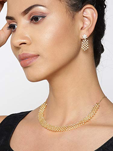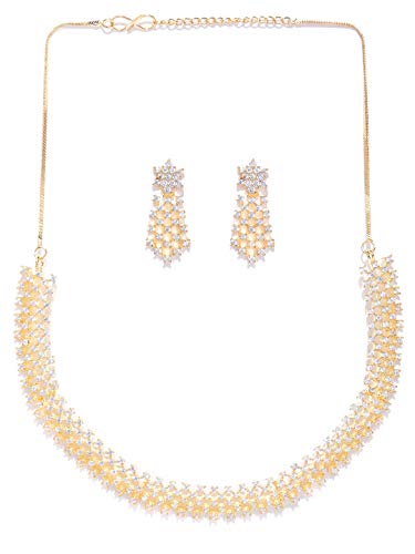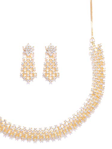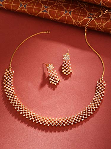 HomeFashionNecklacePriyaasi Indian Jewelry Set for Women | Indian Necklace Set Gold-Plated | American Diamond Studded Jewellery Set | Stylish Modern Choker Style Necklace with Earrings | Bollywood Jewellery Set for Weddings