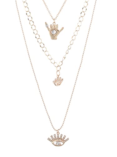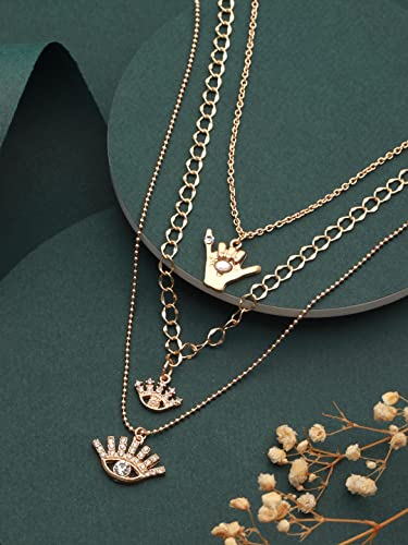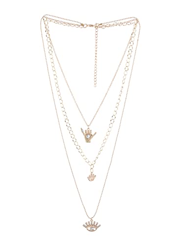 This necklace for women is made of brass metal and is gold-. The necklace can be sed with a lobster claw closure. This layered necklace for women has an evil eye design. This necklace for women will look great with ethnic and indowestern wear.