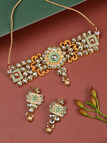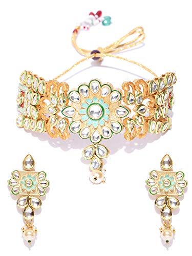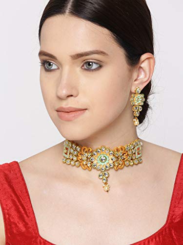 Priyaasi Mint Green Gold Plated Kundan Choker Necklace Set for Women and Girls