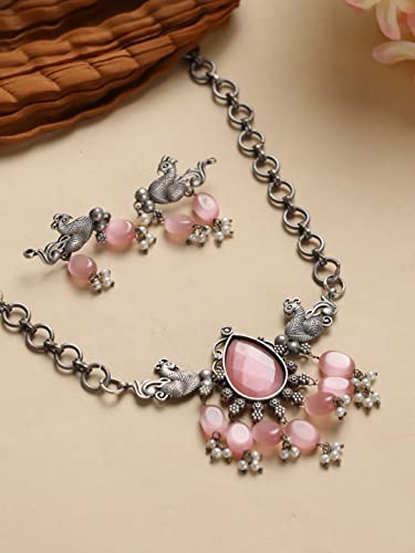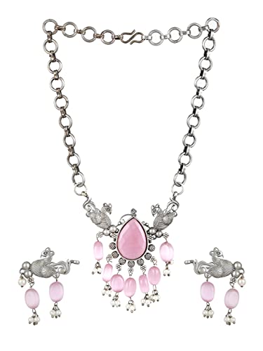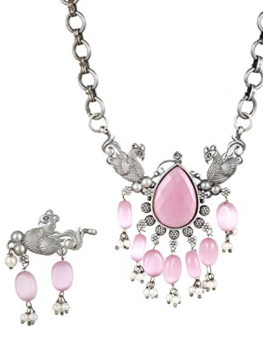 Priyaasi Peacock k Stone Studded Silver Jewellery Set