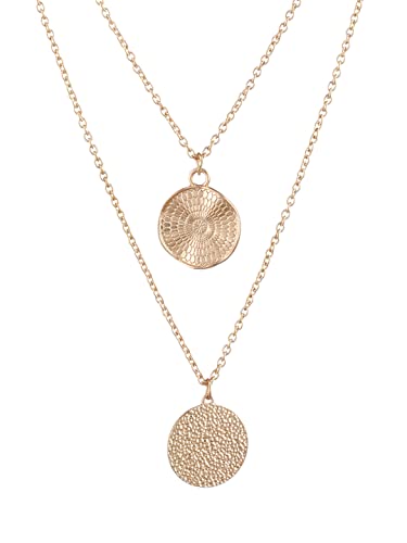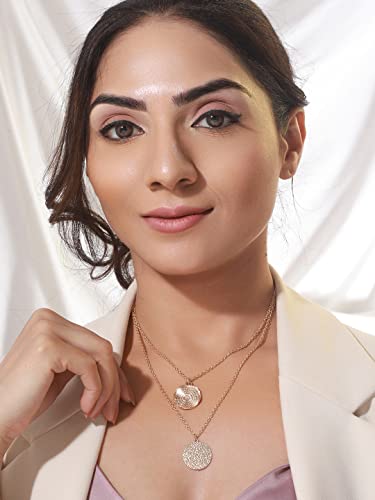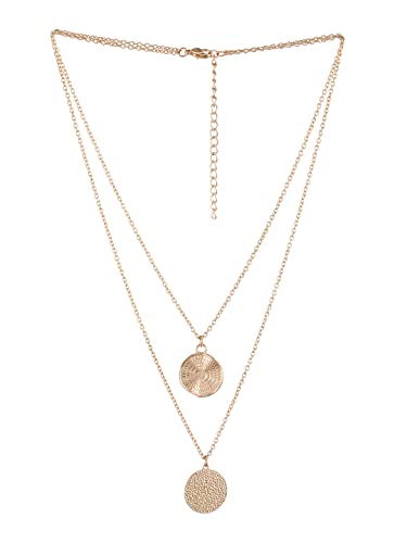 This necklace for women is made of brass metal and is gold-. The necklace can be sed with a lobster claw closure. This textures and dual-layered necklace for women has a linked design. This necklace for women will look great with ethnic and festive wear.