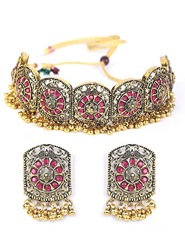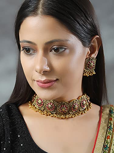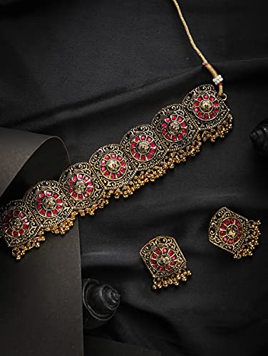 Priyaasi Ruby Stones Studded Golden ColorChoker Set
