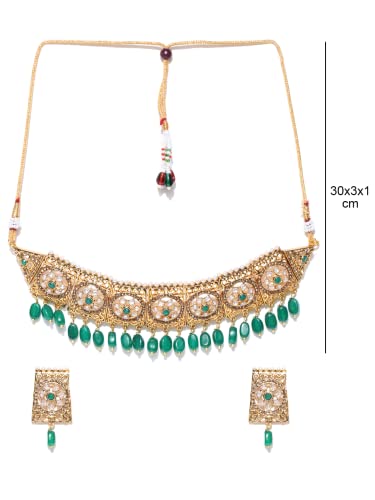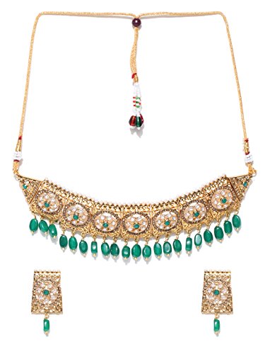 Priyaasi Studded Green Stone Jewellery Set for Women | Wedding Kundan Choker | Gold-Color| Traditional Jewellery Set for Women & Girls