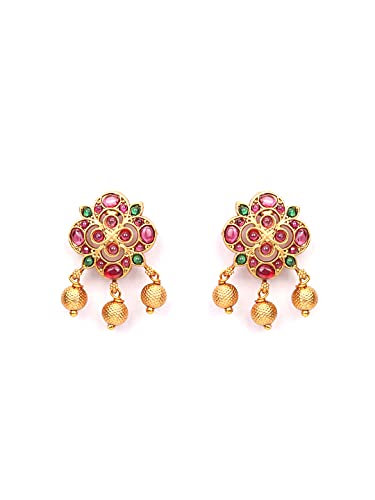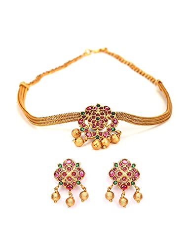 Priyaasi Traditional Jewellery Set for Women | Choker Jewellery Set | Gold-Color| Temple Jewellery for Women in Floral Design | Studded Kemp Stone Jewellery Set for Women